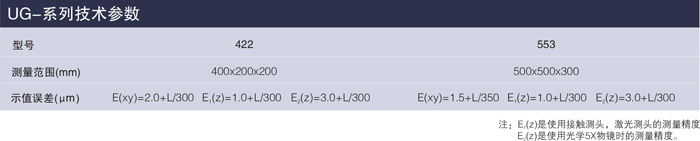 四、UG系列復(fù)合式坐標(biāo)測(cè)量機(jī)技術(shù)參數(shù):